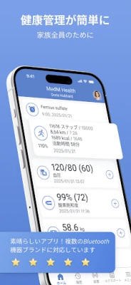 MedM Healthは、900以上のBluetoothセンサーに対応する世界唯一のホリスティック健康ダイアリーです。25種類以上のバイタルデータを収集・管理し、健康管理、ウェルネス目標達成、慢性疾患の管理、生活の質の向上を総合的にサポートします。
