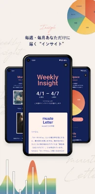 muuteの特長は、ただ書き留めるだけではありません。書き出されたジャーナルはAIによって丁寧に分析され、客観的で多角的な「インサイト」として、まるで友人からの手紙のように毎週・毎月届けられます。これにより、今まで気づかなかった自分の一面を発見し、思考の整理や感情のパターンを深く理解できます。また、毎日の「インスピレーション」は、書くきっかけを与え、自然とジャーナリングの習慣化を促し、新たな視点や発見へと導きます。書く内容に迷った時も、ガイドジャーナリングがあなたの内面と向き合うサポートをします。