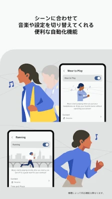 ソニーのオーディオ体験を次なるレベルへと引き上げるパートナー、「Sony | Sound Connect」。2024年10月、「Sony | Headphones Connect」から名称を新たに、さらに洗練された機能と直感的な操作性で、あなたの音楽ライフを豊かに彩ります。このアプリは、まるで専属のサウンドエンジニアのように、カスタム可能なイコライザーを通じて、あなたの耳に完璧にフィットする音質を創造。どんなジャンルの音楽も、最高の響きで楽しめます。さらに、ノイズキャンセリングや外音取り込みレベルを細やかに調整することで、周囲の環境に左右されない、あなただけの理想的なリスニング空間を自在に構築可能です。