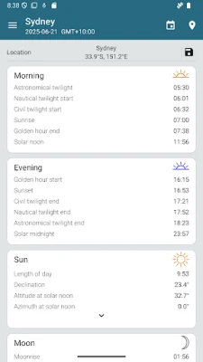 アウトドア活動の計画に「Sun Position」は最適です。日の出、日の入り、ゴールデンアワーの正確なデータを提供し、太陽と月がいつどこにあるかを詳細に示します。インタラクティブマップ、詳細なチャート、そしてARカメラオーバーレイを通じて、精密な計算に基づいた情報が視覚的に分かります。