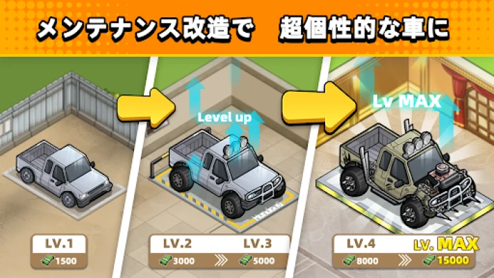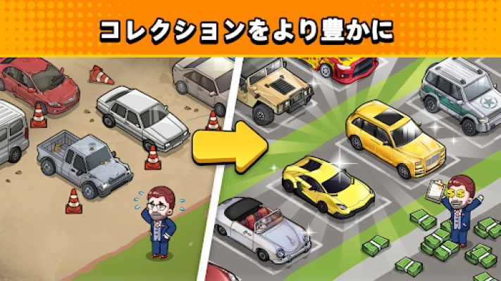 「中古車タイクーンゲーム」は、中古車の売買をシミュレートするビジネスモバイルゲームです。アイドルカーゲームの要素と、中古車店経営の奥深さを融合。忙しい日々で満たせない、大物になる夢を叶えましょう。